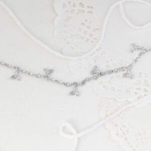 The Little Leaves Charm Bracelet from Izhar features a delicate silver chain adorned with tiny leaf charms that sway gently with every movement. Light, playful, and effortlessly charming, this silver bracelet is designed to bring a fresh touch of elegance to everyday wear.