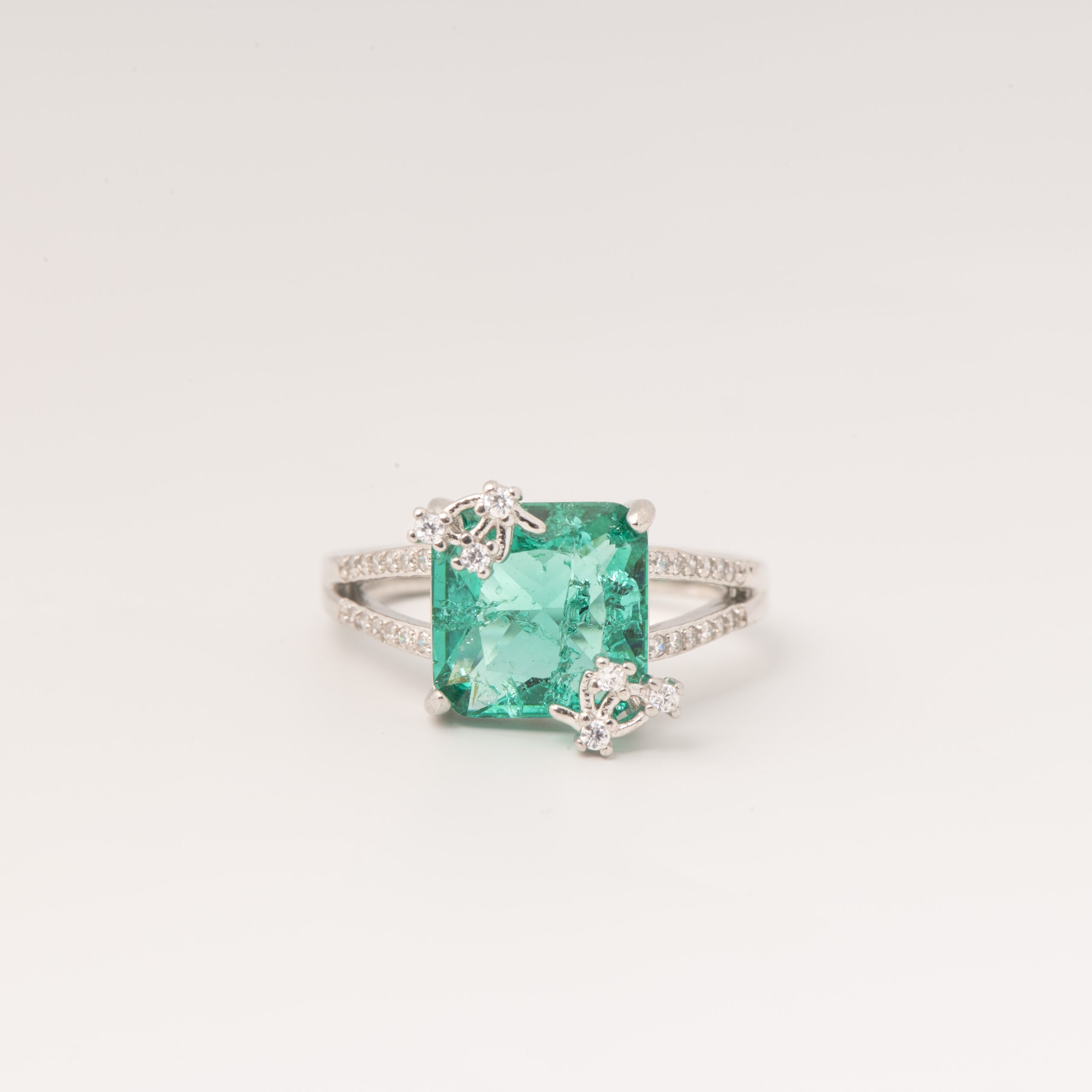 Bold, luminous, and impossible to ignore, Izhar’s Eternal Love Emerald Crest Ring is designed to make an impression. Featuring a striking emerald-toned centre stone held in a sculpted silver setting, the ring is elevated with subtle diamond accents along the shoulders for added brilliance. Perfect for moments when you want your jewellery to speak before you do.