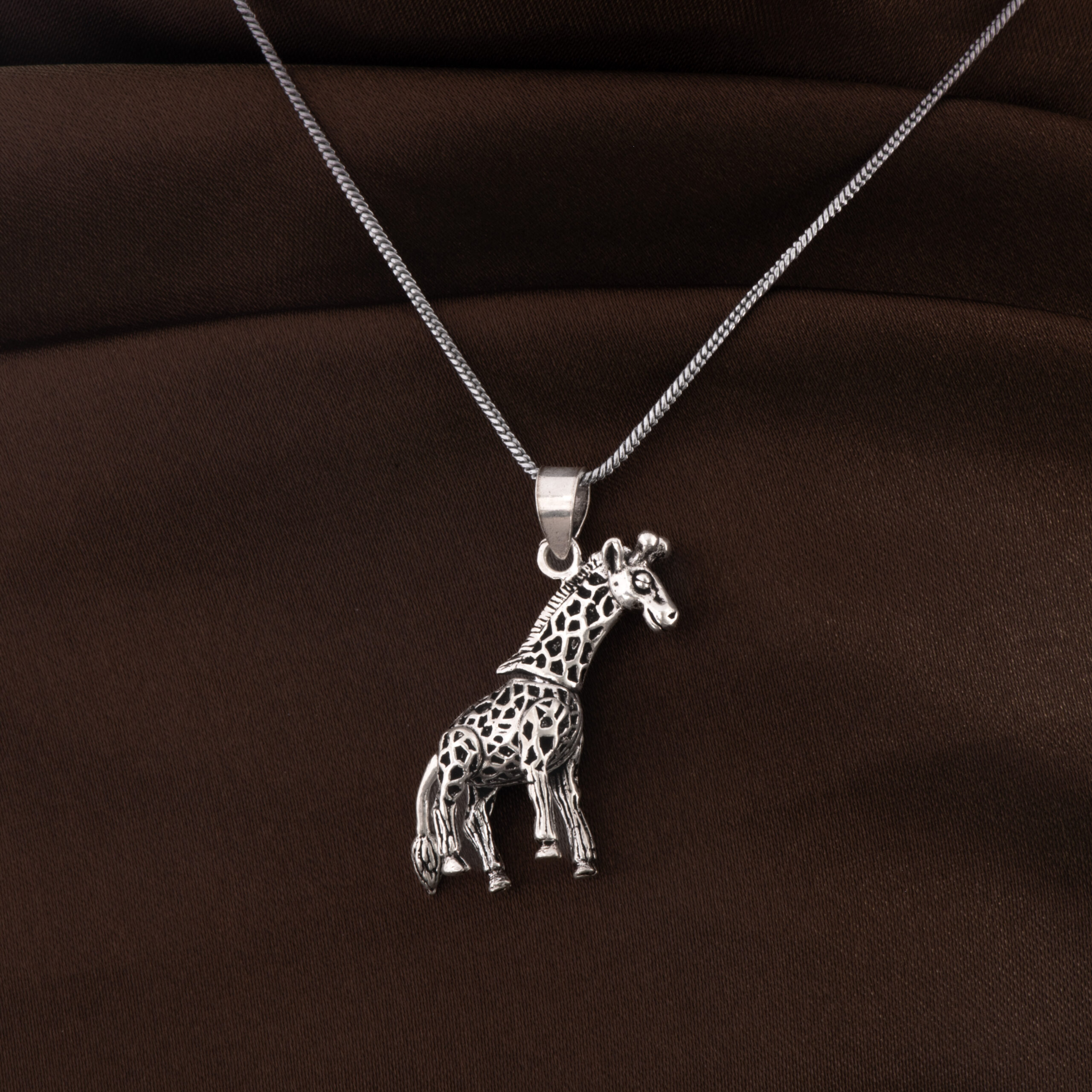 - Design: Four-legged giraffe silver pendant charm featuring a sleek oxidised design
