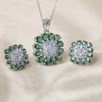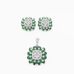 Perfect for every occasion, Izhar’s Green Emerald Pendant Set is a timeless addition to your jewellery collection! Crafted in 92.5 sterling silver, this exquisite set includes a stunning pendant and matching earrings that add a royal touch to any festive ensemble.