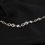 The Infinity Bloom Bracelet from Izhar features delicate infinity links adorned with tiny crystal blooms that shimmer beautifully with every movement. A playful yet elegant piece that adds charm and sparkle to your everyday looks.