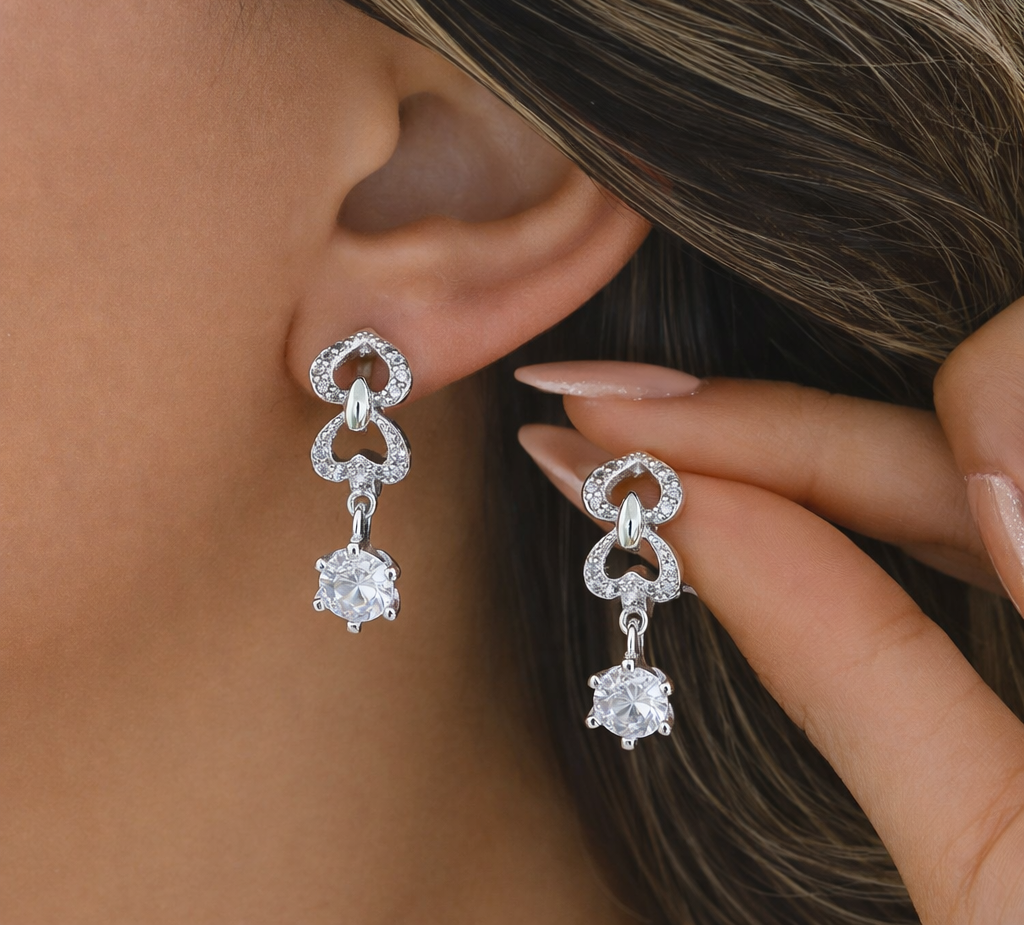 Symbolising connection and continuity, these infinity-inspired earrings from Izhar feature soft curves accented with fine sparkle and a graceful dangling stone. Elegant and meaningful, they’re made for everyday sophistication with a touch of sentiment.