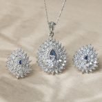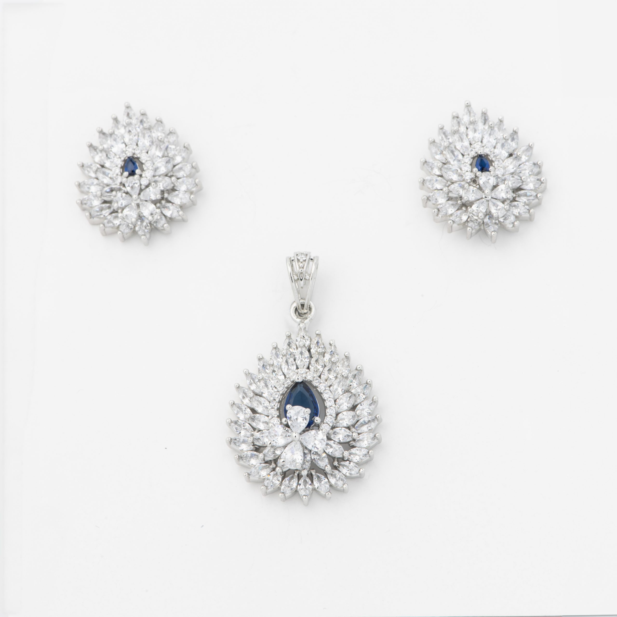 A true delight to the senses — this exquisite set from Izhar captures the brilliance of royalty in a single glimpse. Its striking blue centrepiece gleams amidst a halo of intricately set crystals, radiating charm and elegance like never before!