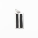 - Design: Rectangular silver pendant charm featuring sleek black panels highlighted by a sparkling diamond-studded centre strip