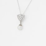 Effortlessly enthralling, Izhar’s Modish Triangle Pearl Pendant Charmer is designed to leave an everlasting impression. The modern triangular frame, encrusted with shimmering diamonds, radiates contemporary elegance while the delicate pearl drop adds a touch of spectacular drama.