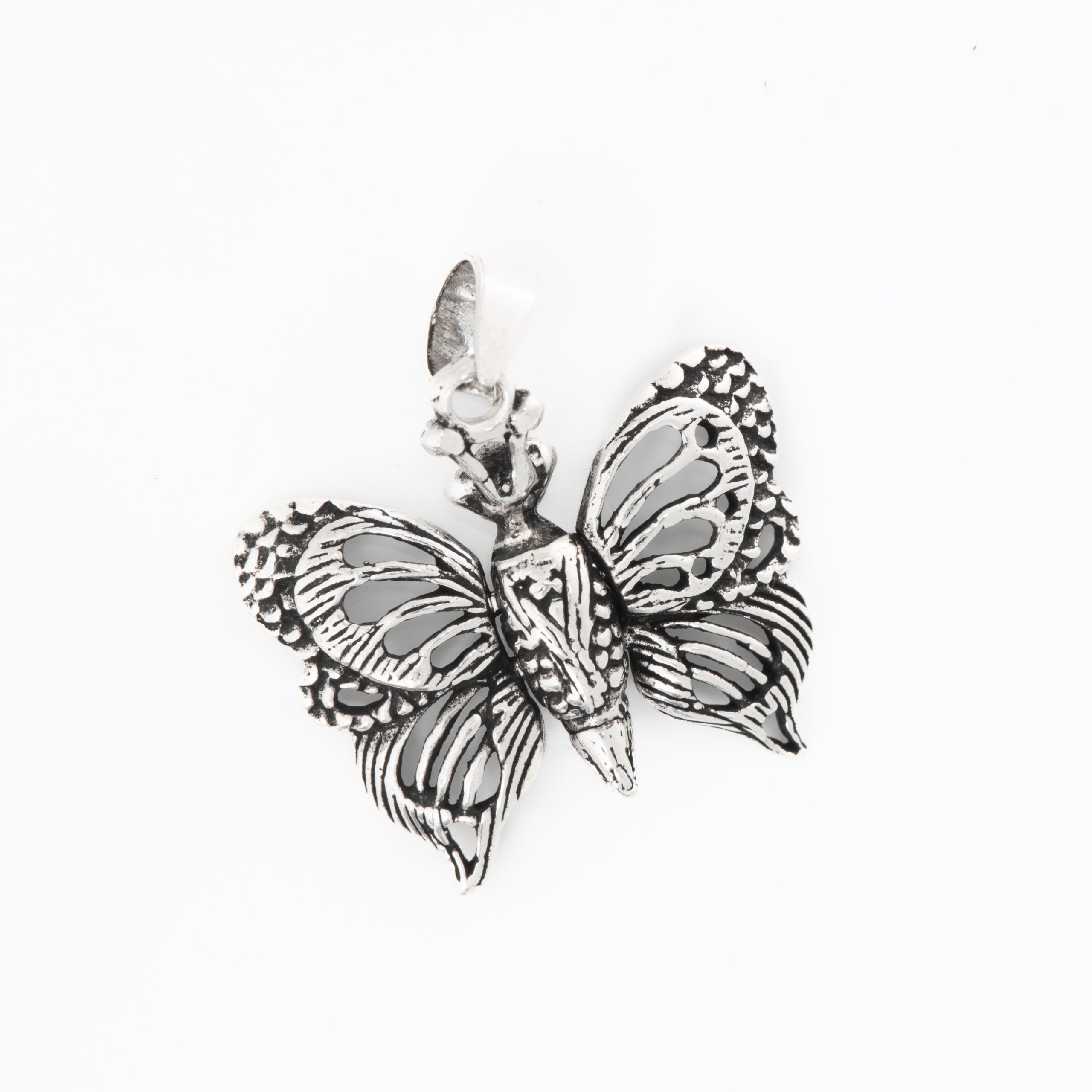 - Design: Oxidised heavenly butterfly-shaped silver pendant charm