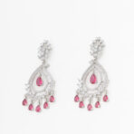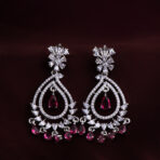 Layers of sparkling stones and deep ruby drops come together in a dramatic yet graceful chandelier design. Crafted for evenings that demand elegance, these earrings radiate confidence, glamour, and timeless beauty.