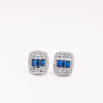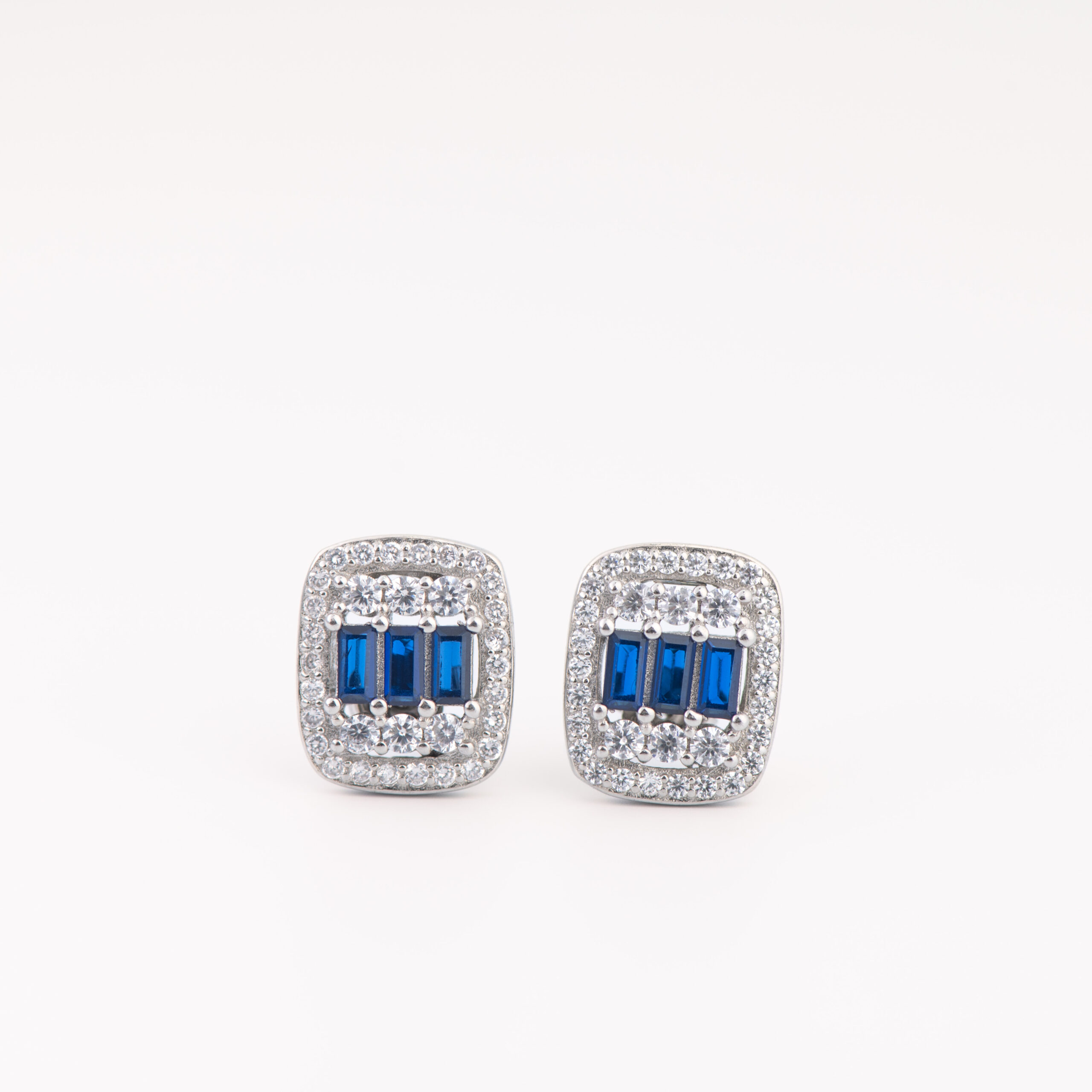 Refined and timeless, the Sapphire Frame Elegance Studs showcase a deep sapphire-toned centre encased in a structured frame of shimmering stones. The clean silhouette and rich colour make this pair perfect for those who love understated luxury with a classic edge.