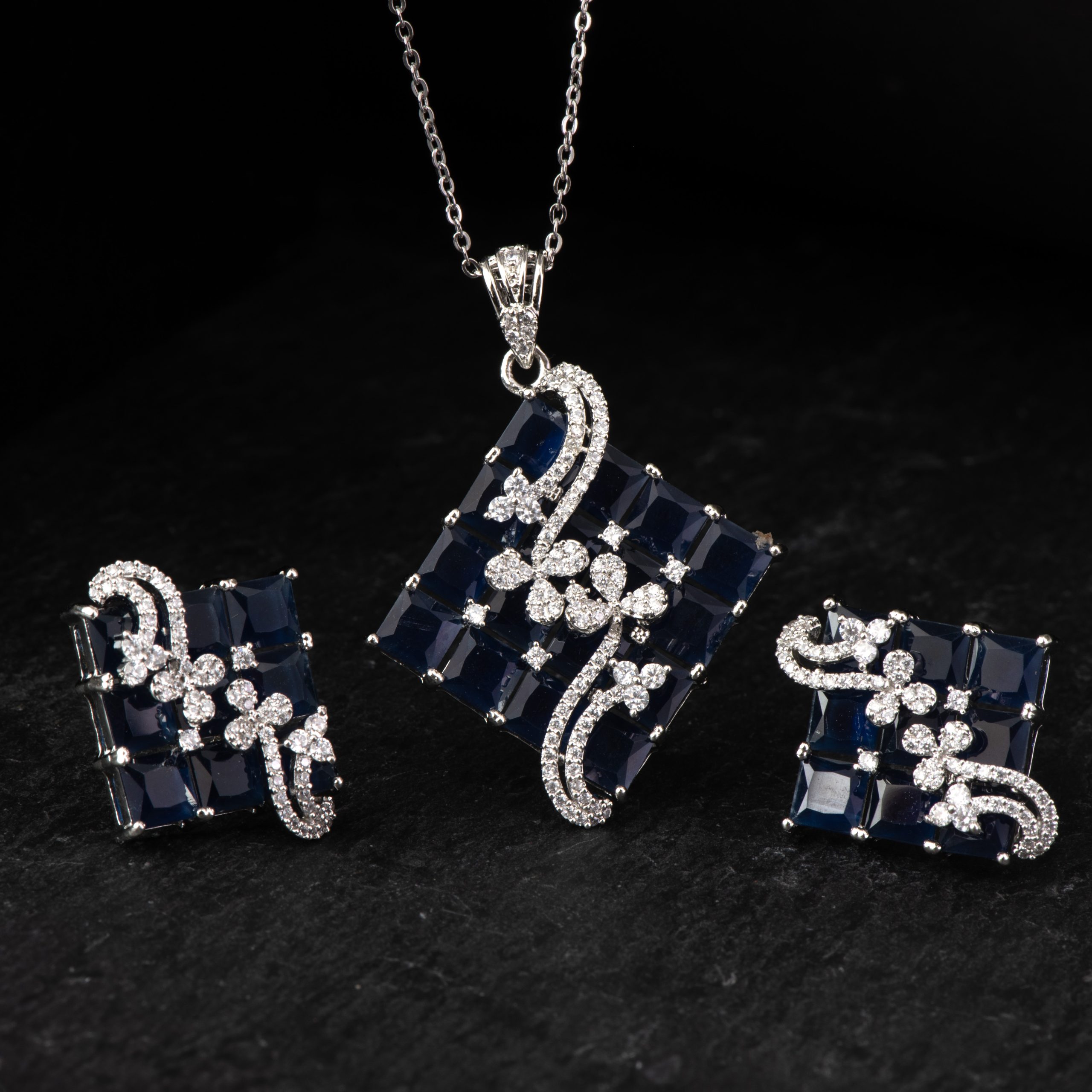 Be the first to review “Sapphire Mosaic Waves Pendant Set”