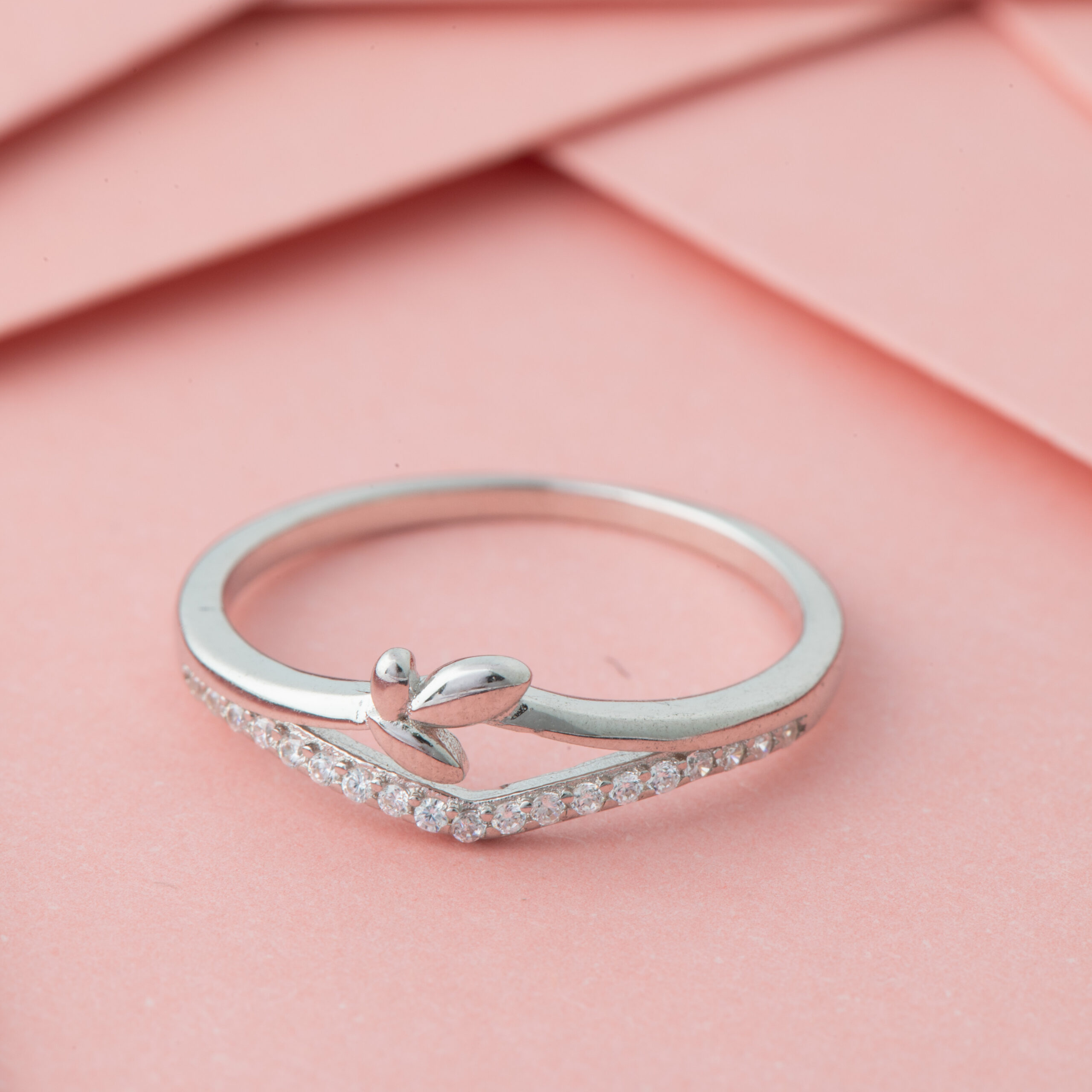 With a sleek chevron silhouette softened by delicate sparkle, the Soft Bloom Chevron Ring blends structure with femininity. A modern design that feels light, elegant, and timeless.