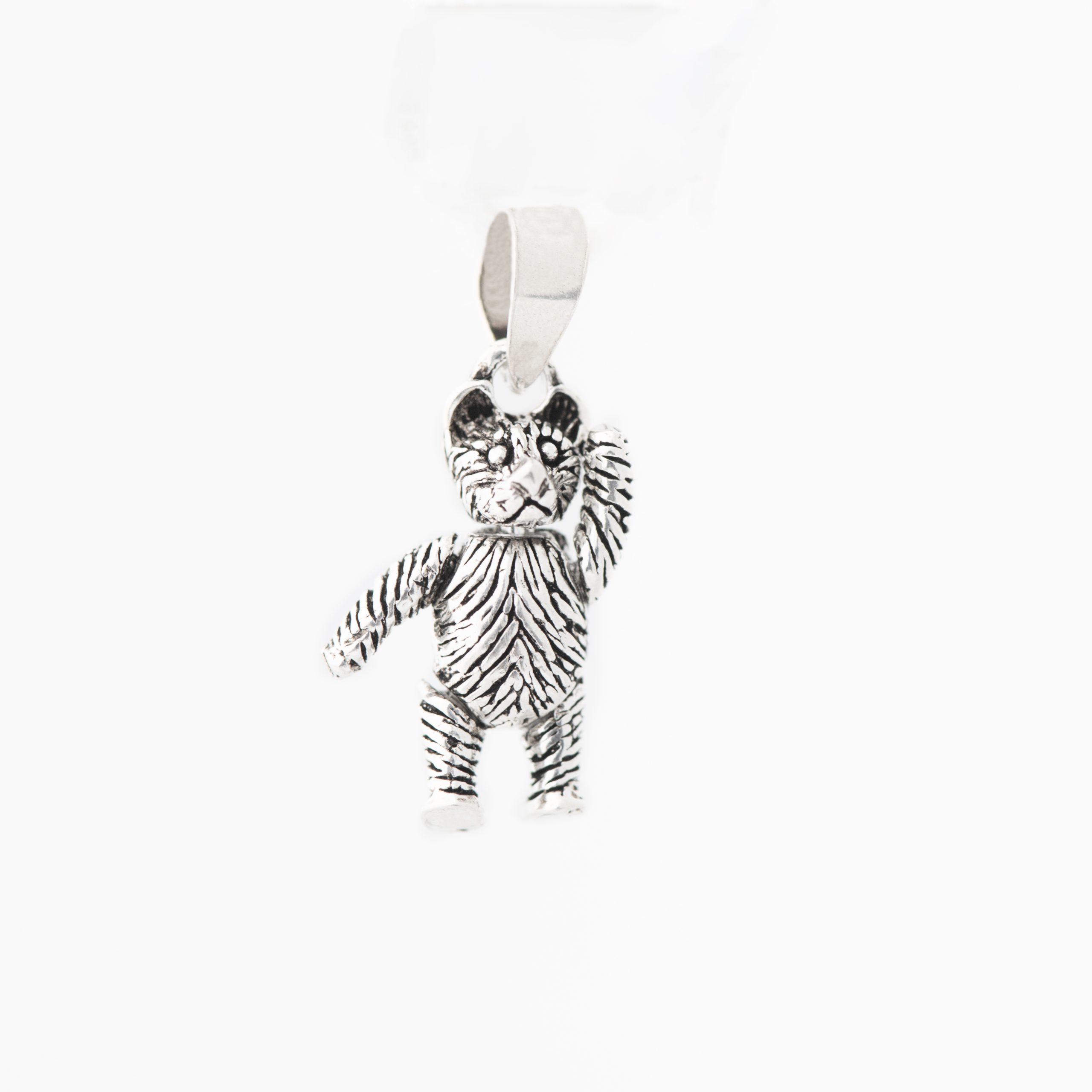 - Design: Silver bear pendant charm featuring a cute miniature form with fine sculpted texture.